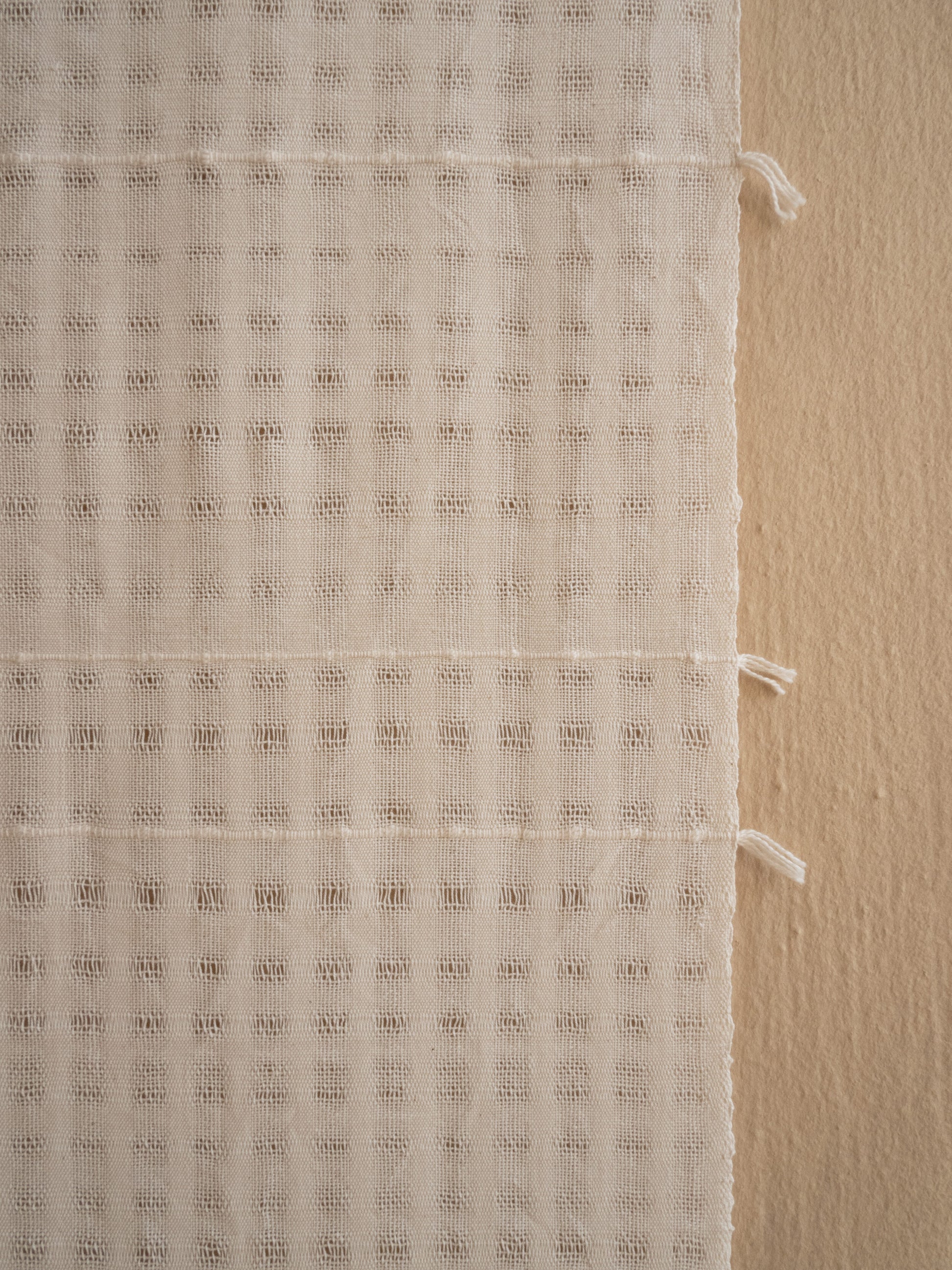 Handwoven in Cape Town using locally sourced natural fibers, Chiaro blends traditional craftsmanship with modern design. Its rich texture and subtle harmony create a sense of stillness, making it a striking yet calming addition to any space. Finished with brass mounting bars for a refined touch.