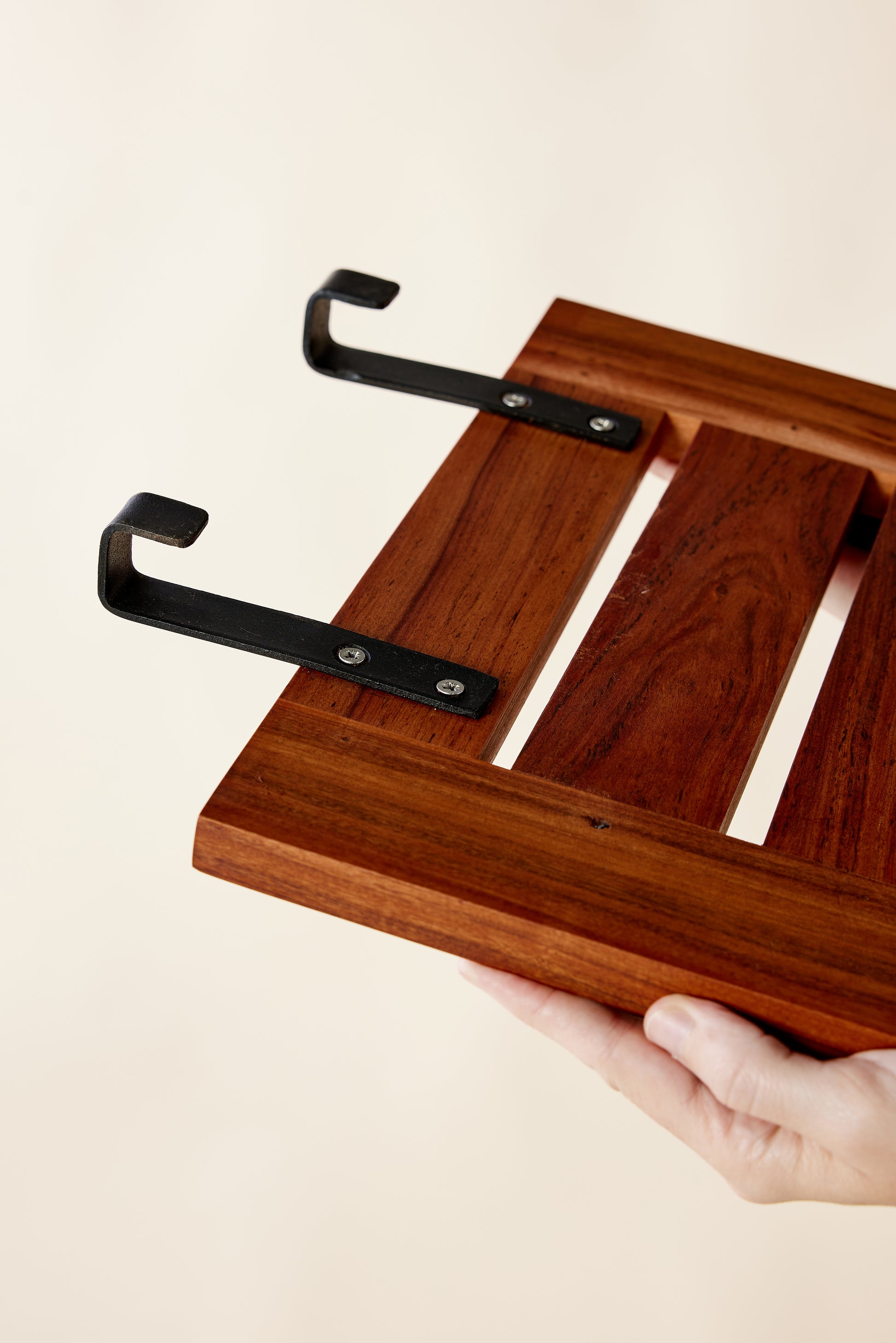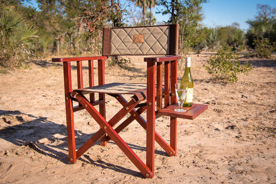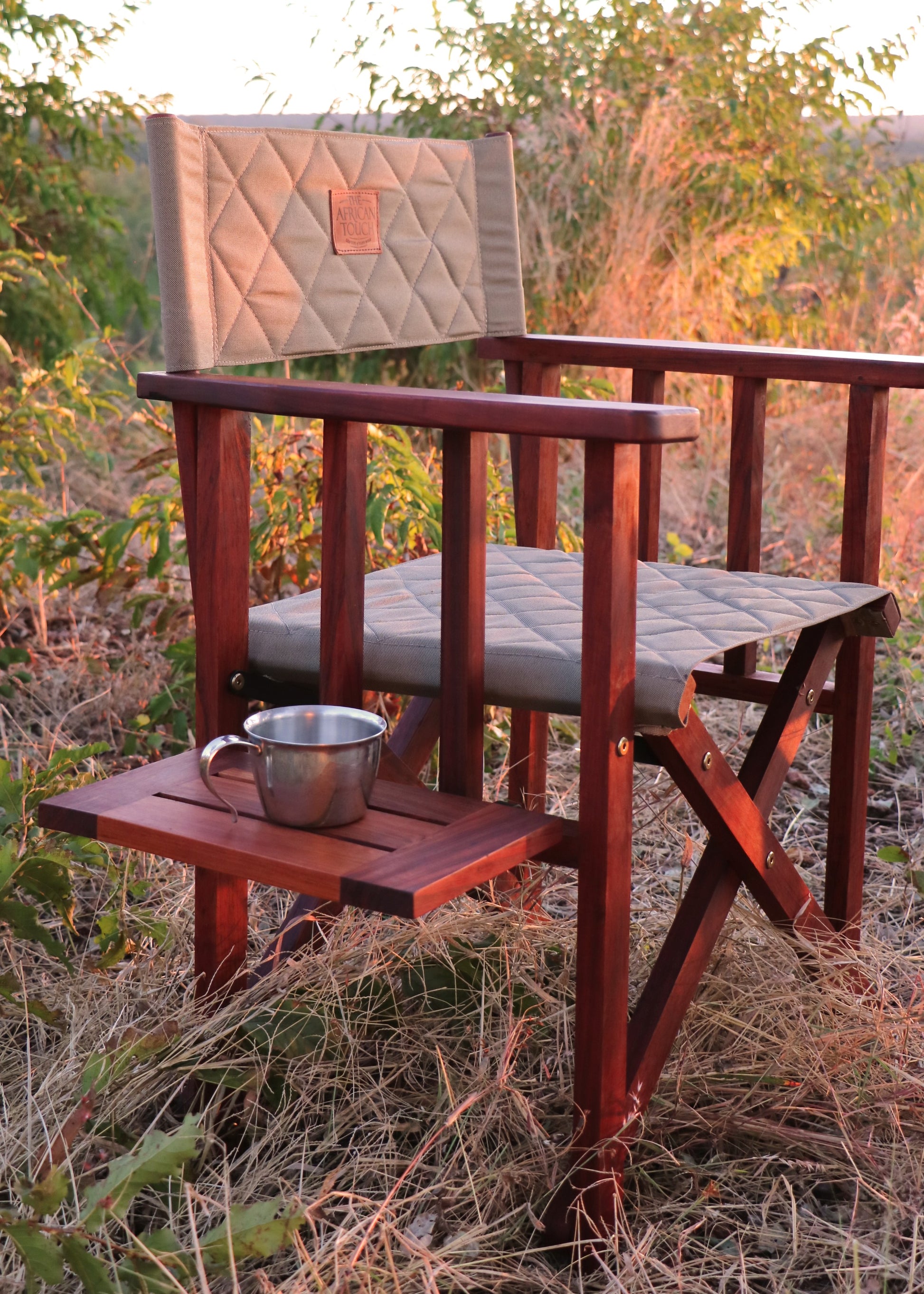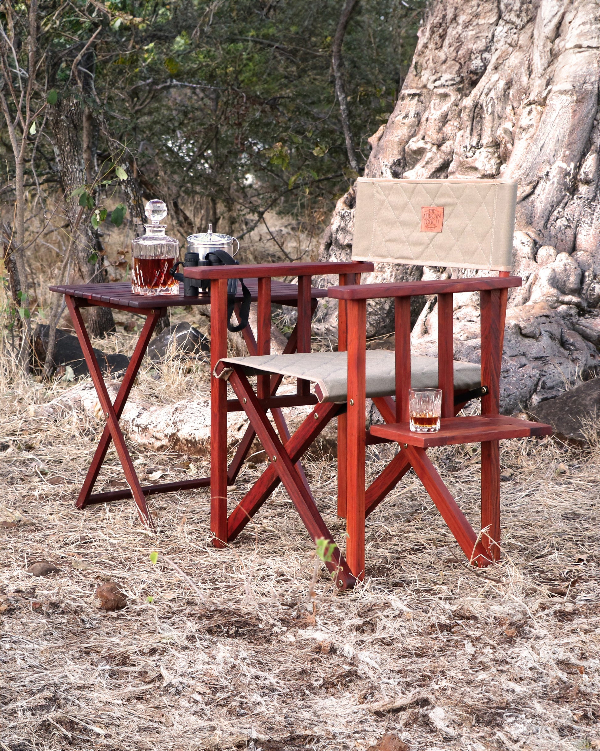 Enhance your outdoor seating experience with the African Touch Director's Chair Drinks Tray, a marvel of functional design and elegance. This tray, a perfect complement to our Safari Director's Chair, epitomizes simplicity and utility. Its two steel brackets effortlessly click over the chair rail, providing a stable and secure surface for your beverages.
