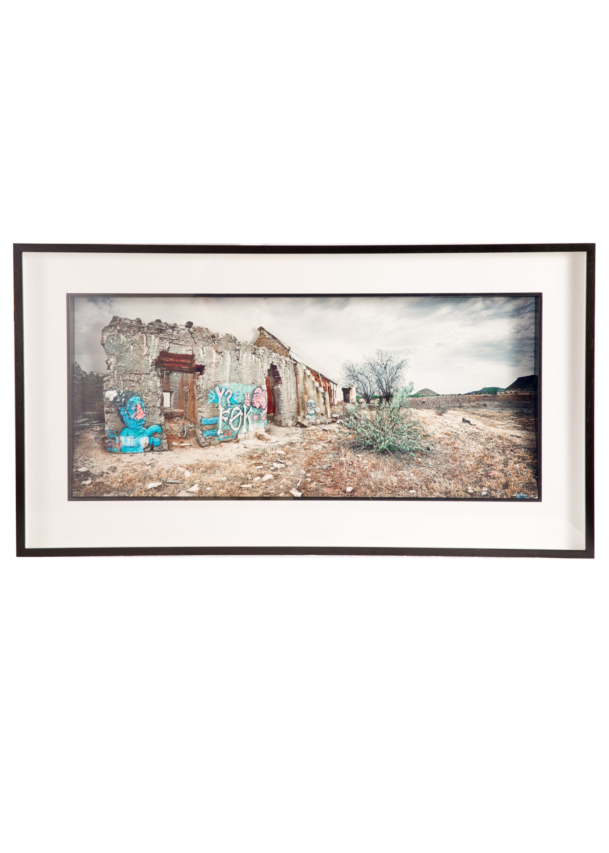 South African fine art photographer Sandy McLea blends photography and sculpture in his evocative Rural Façade series. Each mixed media piece combines photographs of urban graffiti with abandoned rural scenes, layered using the paper tole technique to create a striking three-dimensional effect. The result is a powerful visual narrative that lifts the graffiti from its original context, transforming it into an artwork that bridges urban and rural, decay and beauty. By subtly raising parts of the rural landscape, McLea creates depth and balance, inviting the viewer to question the boundaries between surface and meaning.