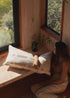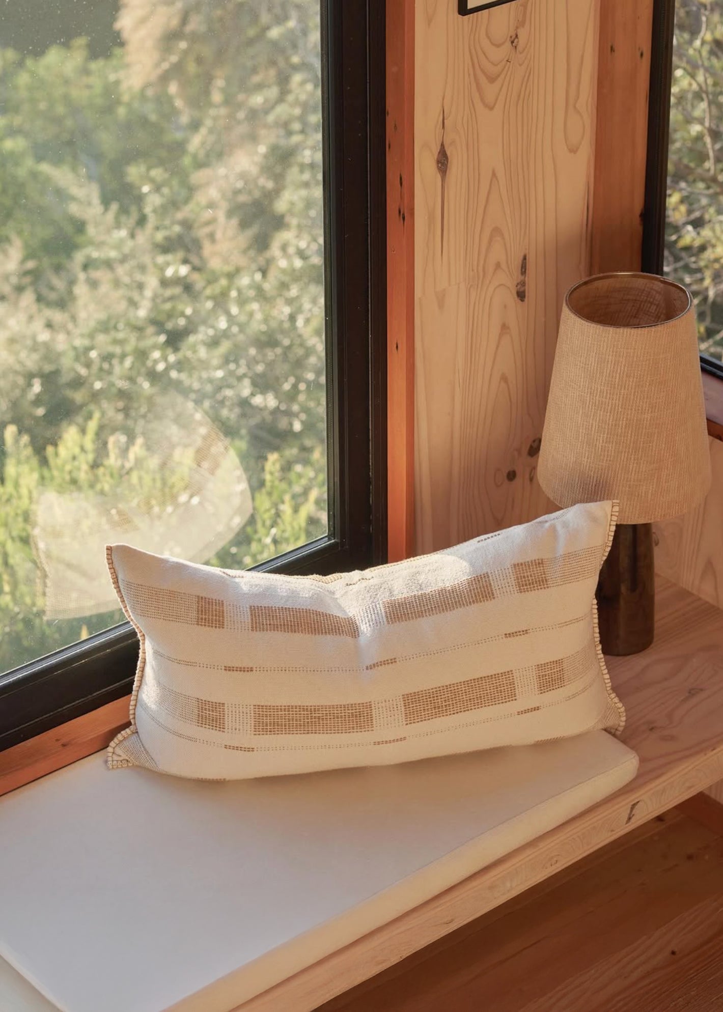 The Fulcrum Oversized Lumbar Pillow is adorned with locally sourced mother of pearl shell buttons, adding a touch of elegance to its milky natural texture. The environmentally considerate dyeing, weaving, and finishing processes ensure that this lumbar pillow is as sustainable as it is beautiful. Each pillow embraces natural irregularities and color variances, celebrating the hands and earth that crafted it.