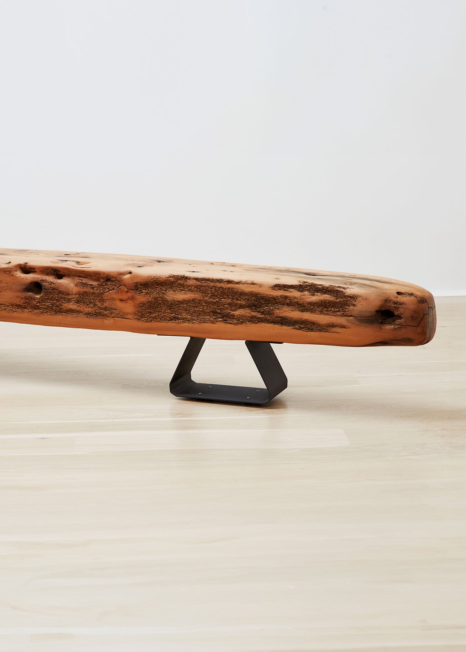 Experience the masterful craftsmanship of the Wiid Tapered Fir Artisan Bench. Hand-crafted from reclaimed Douglas Fir beam, this bench embodies the timeless beauty of natural timber. Its tapered design and 4.5mm stainless steel legs, finished with a black matte powder coat, create a striking blend of rustic and contemporary aesthetics. Each bench is custom designed and estimated to be over 100 years old, making it a truly remarkable and sustainable addition to your space.