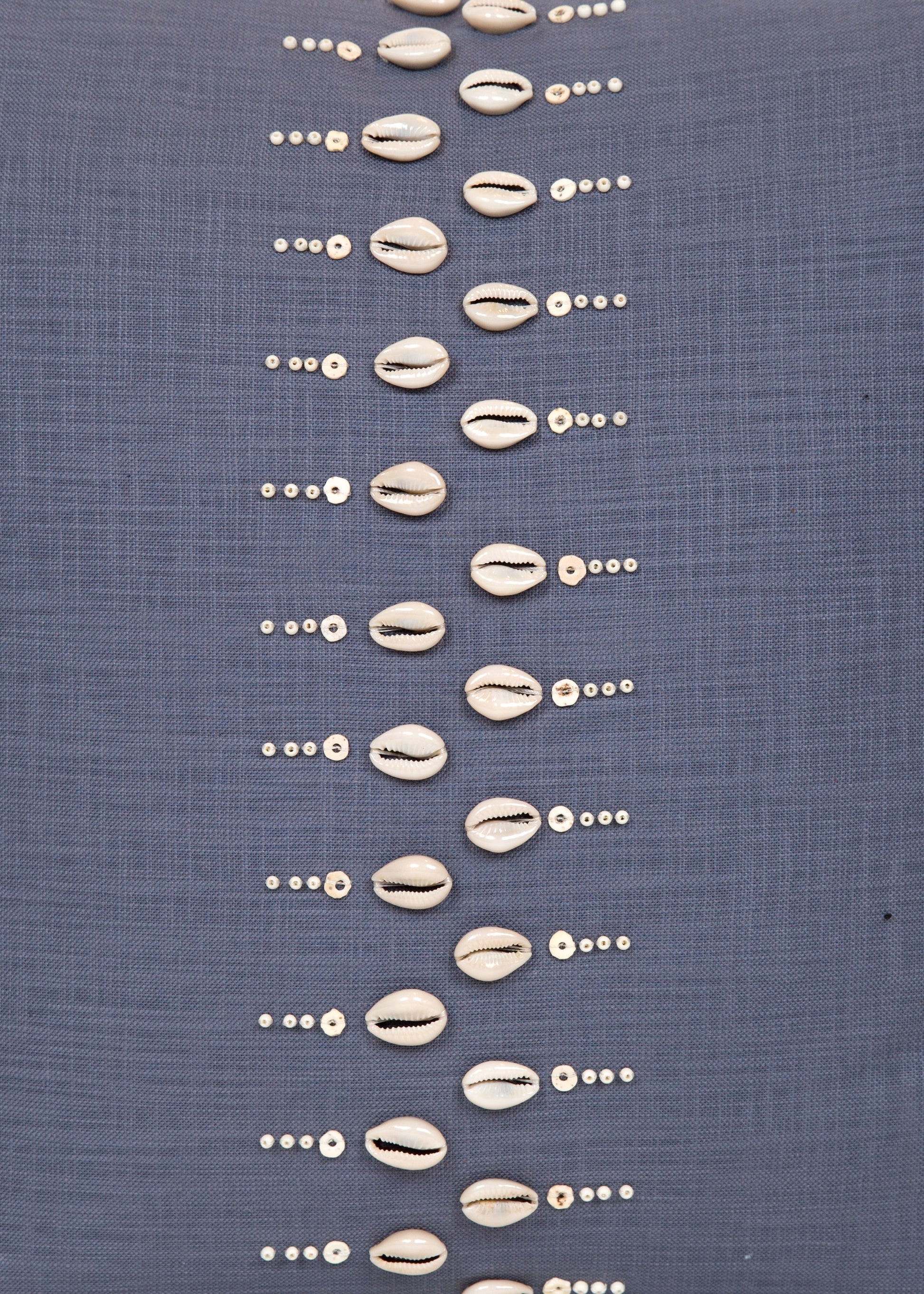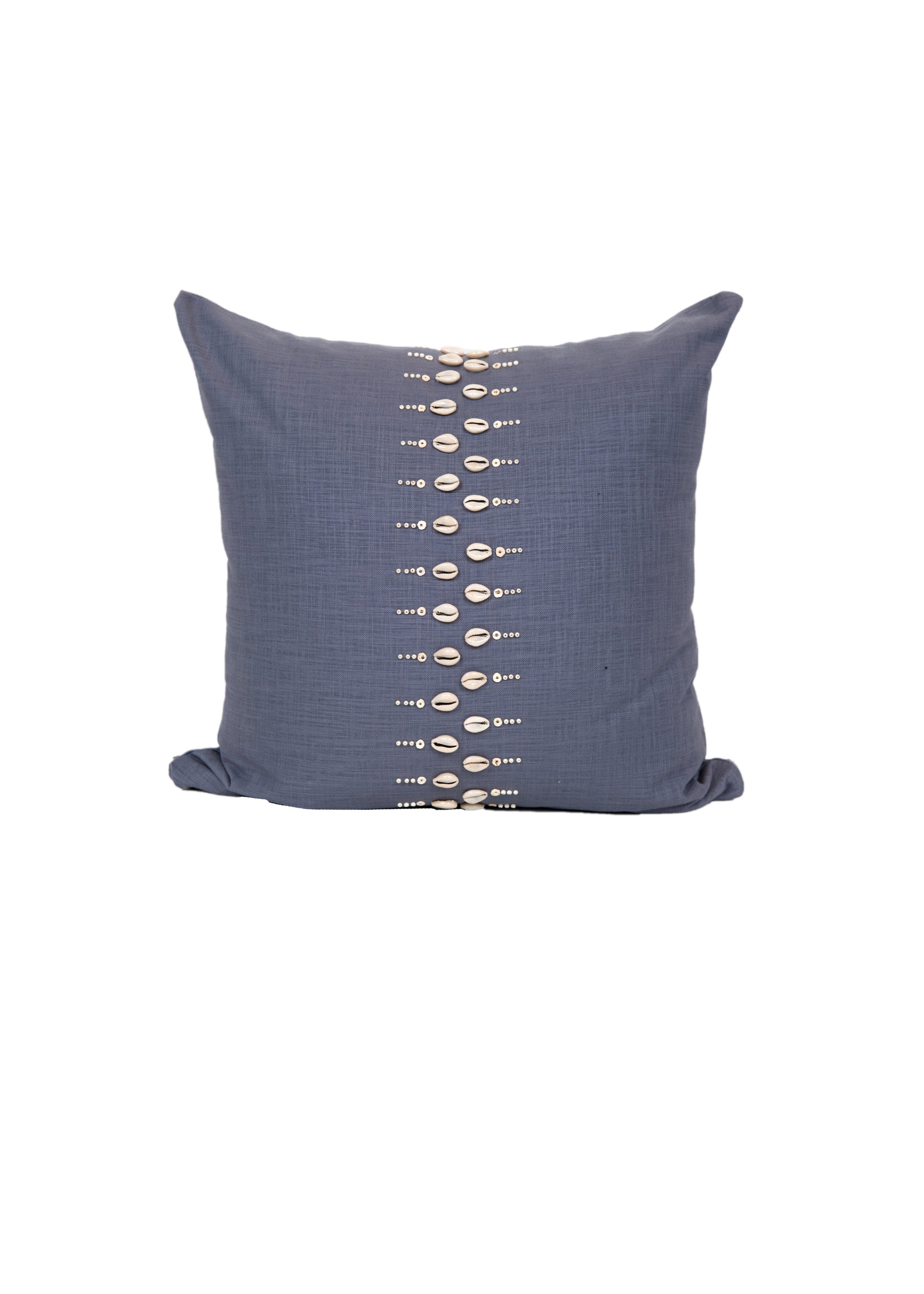 Cowrie Ileli Indigo Grey Trade Bead Pillow Cover