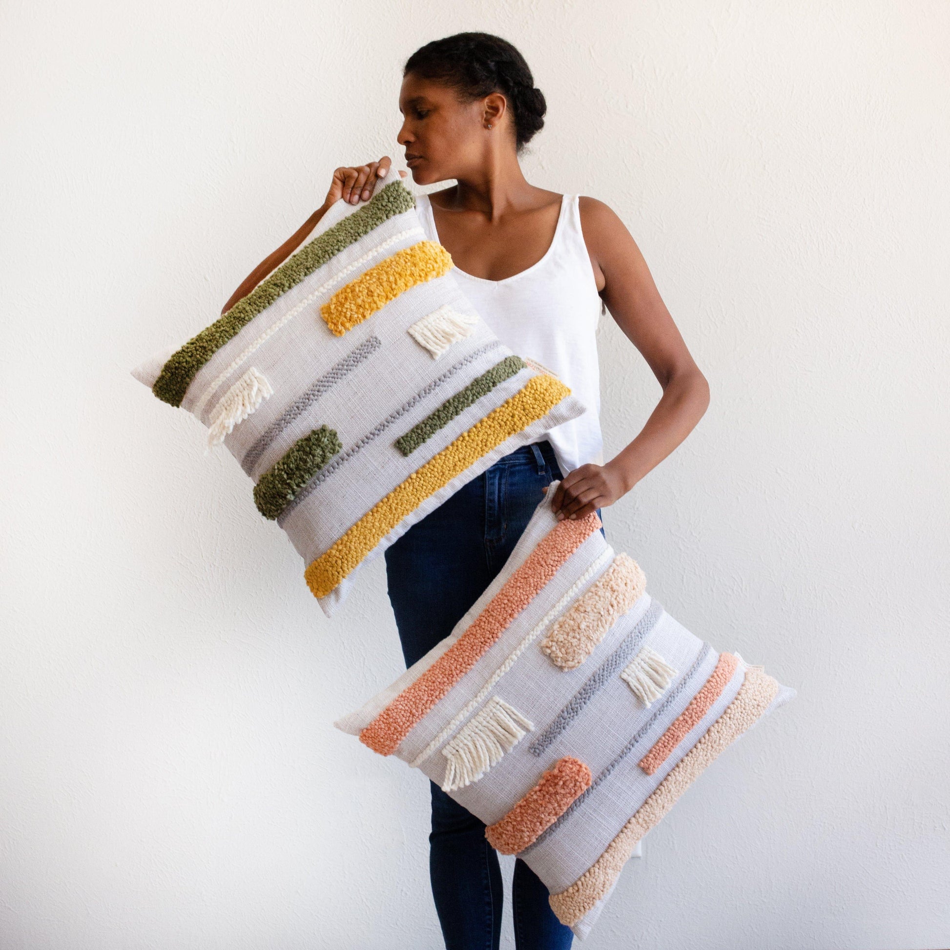 This lovely group of artisan women work to create stylish pillows, utilizing unique techniques and handmade from some of the highest-quality cotton we've ever seen. Not to mention all of the fantastic work they do to empower women and support their communities. Their story warmed our hearts and we couldn't help but fall in love with their fantastic designs. Cotton Tree Pillows creates exclusive hand-made contemporary cushions focusing on texture and original design, guided by environmental kindness and comm