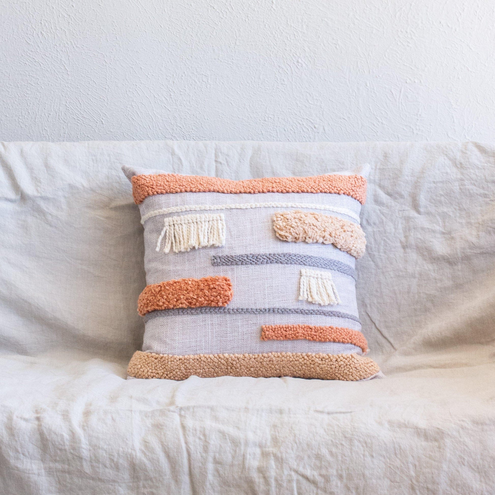 Das Ikhusi-Sofakissen ist die perfekte Kombination aus Komfort und Stil für jeden Raum. Diese Kissen sind aus herrlich dickem, farbenfrohem und weichem Öko-Baumwollgarn gefertigt, wodurch sie sich nicht nur angenehm anfühlen, sondern auch optisch ansprechend sind. Der einzigartige 3D-Strickstil mit „Punch Needle“ erzeugt eine dynamische Textur, der man kaum widerstehen kann, sie zu berühren.