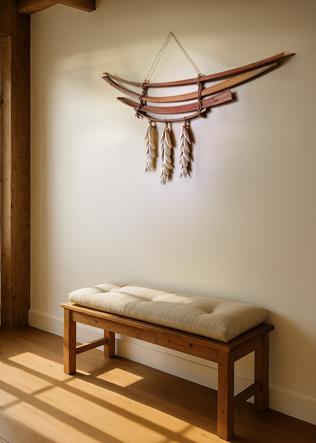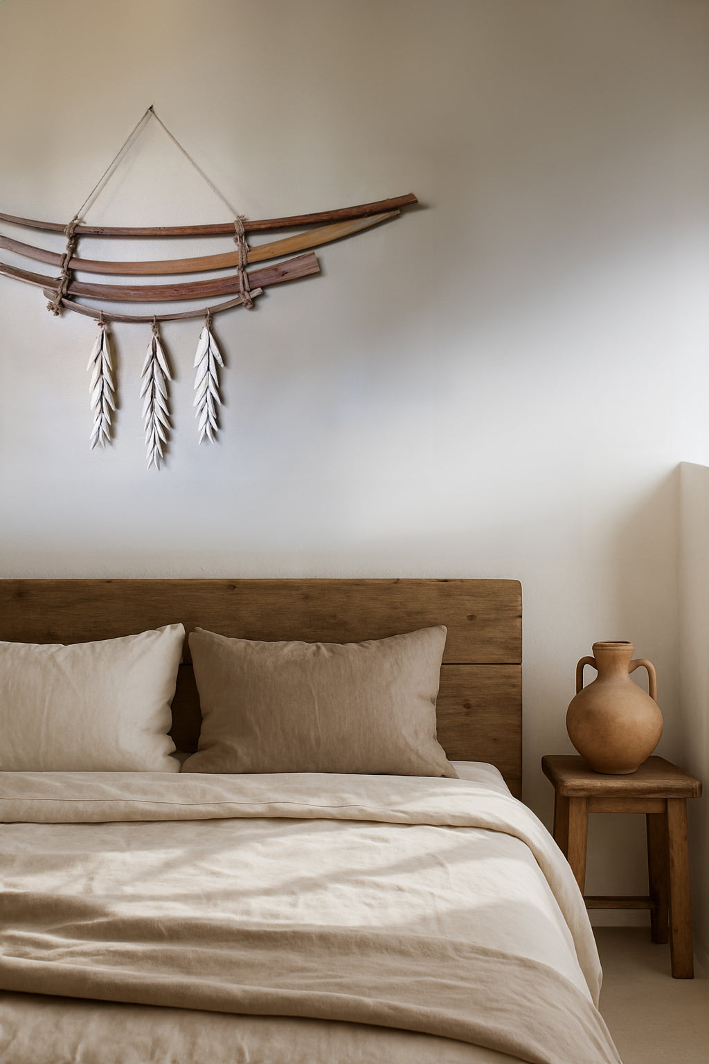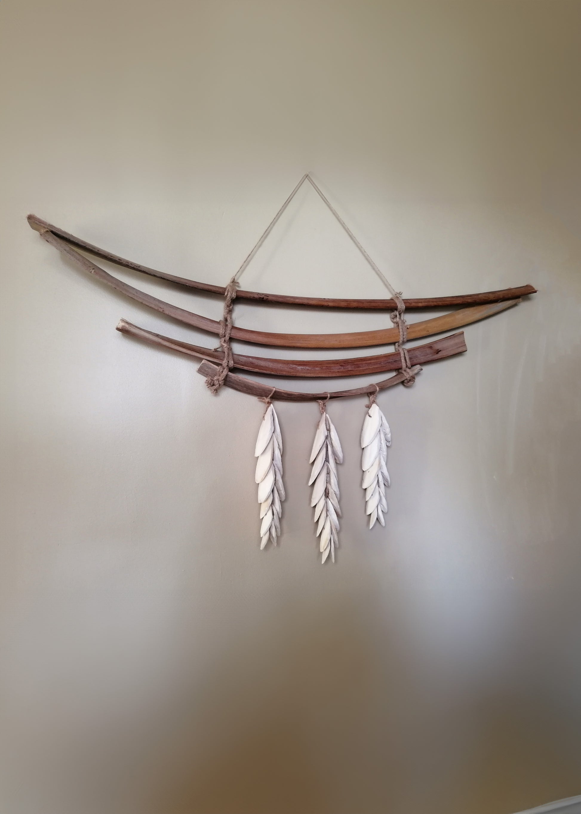 Inspired by the fishing boats of Paternoster on South Africa’s West Coast, this striking wall hanging combines natural palm tree pod branches with hemp braiding and hand-carved sepia bone accents. A piece that merges coastal heritage with contemporary design, it brings texture, storytelling, and cultural elegance to any wall.
