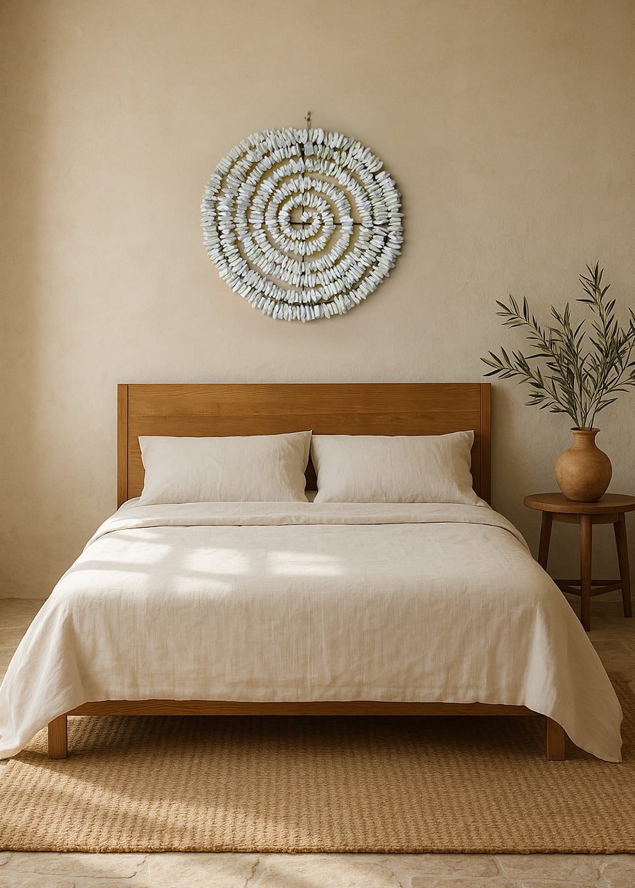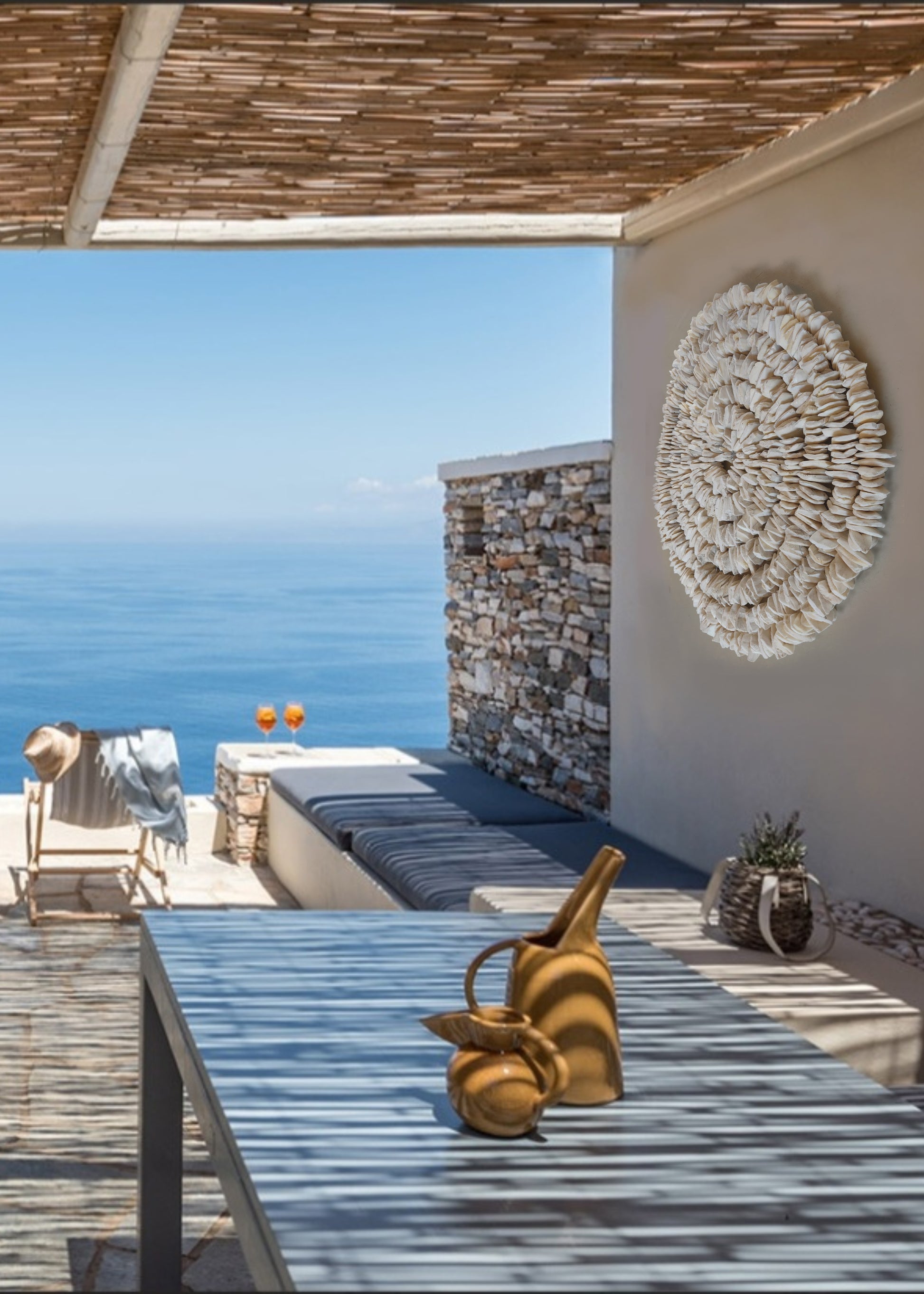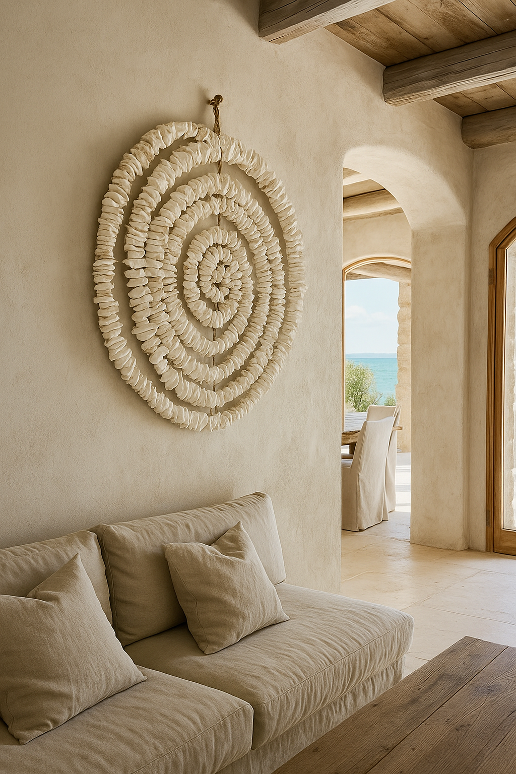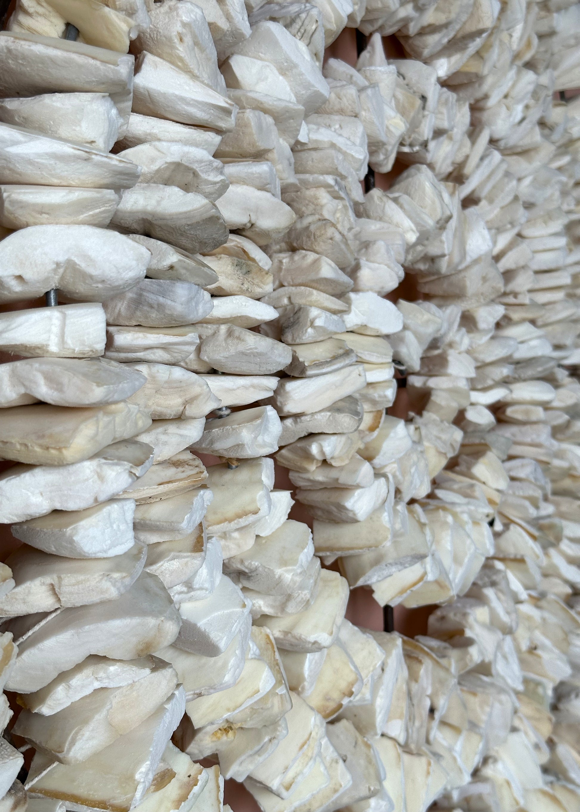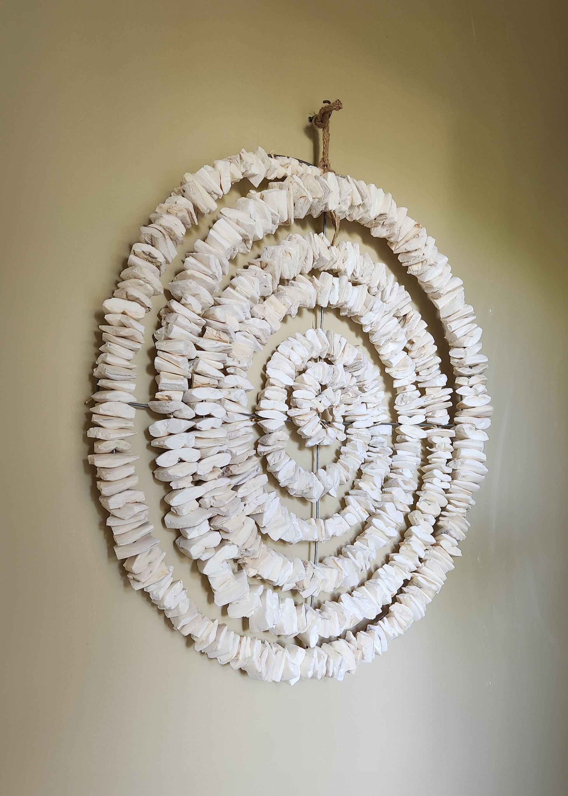 A bold statement piece, this wall hanging features a spiraling composition of matte-white sepia bone, arranged to create texture and movement. The design celebrates harmony and interconnectedness, making it a symbolic and sculptural work of art.