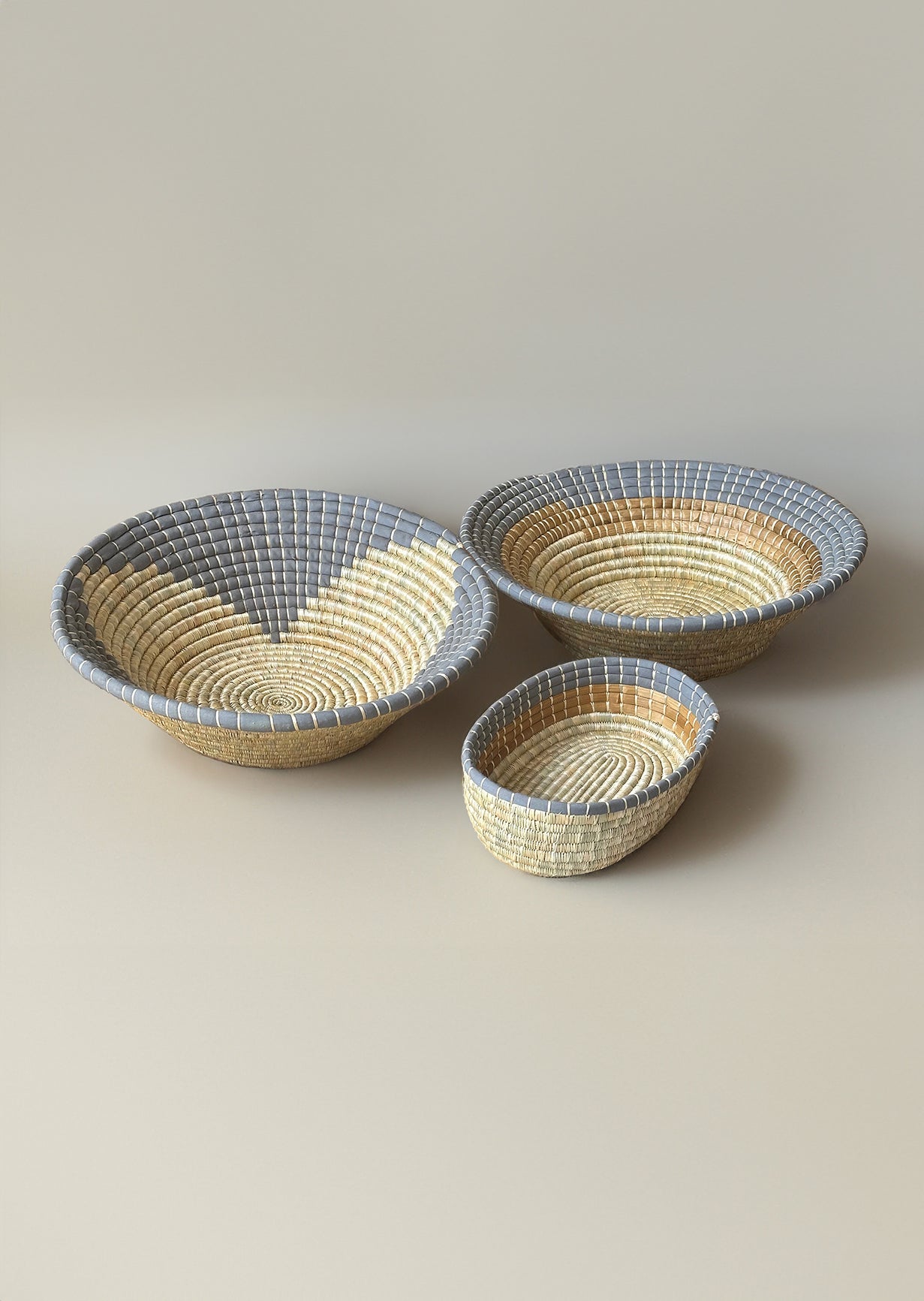 Handwoven in Tanzania by skilled WomenCraft artisans, this 3-piece set brings functional beauty and cultural richness to your home. Crafted from natural grasses, dried banana bark, and upcycled fabric, each item showcases traditional weaving techniques passed down through generations. The set includes two fruit bowls and one bread basket—perfect for everyday serving, decorative display, or thoughtful gifting. Each purchase supports sustainable income for women artisans while preserving traditional weaving techniques.