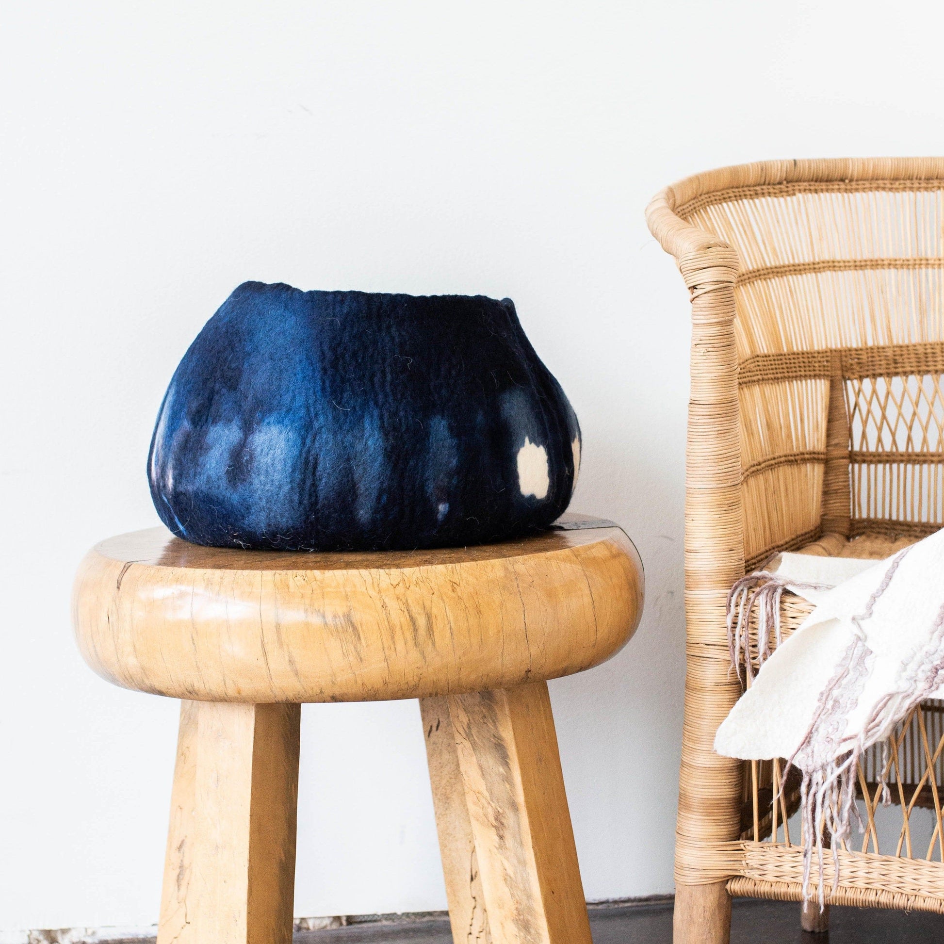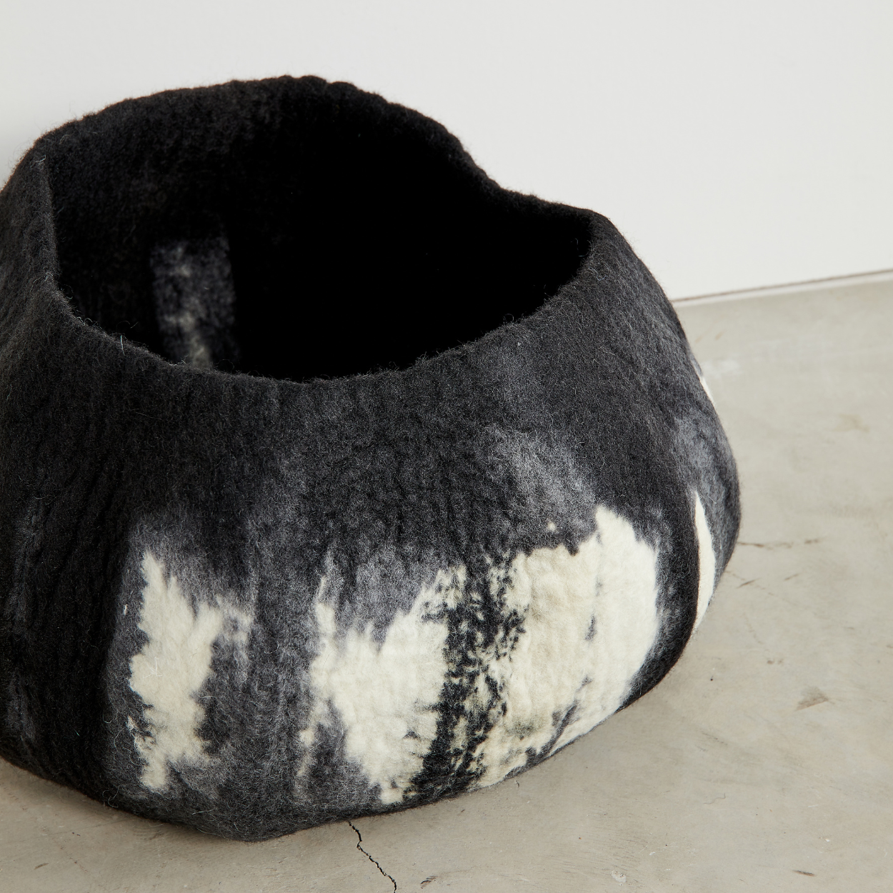 Diese zwiebelförmigen Körbe ähneln den ghanaischen Bolga-Körben und sind ideal für alle, die natürliche, erdige Stücke lieben, die sich perfekt zur Aufbewahrung in jedem Raum eignen. Jeder Körbchen ist aus 100 % Karakulwolle handgefilzt. Diese Körbe eignen sich perfekt als Dekorationsstück oder als stilvolle Aufbewahrungsmöglichkeit.
