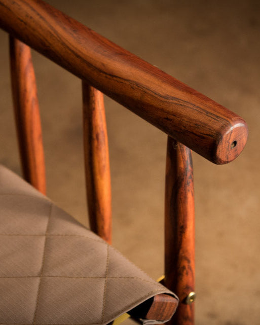 Werten Sie Ihr Interieur mit dem edlen Regiestuhl Kruger Quilted Canvas auf, einem Meisterwerk der Handwerkskunst, das den klassischen Regiestuhl neu definiert. Jedes Bauteil dieses Stuhls ist ein Beweis für die Geschicklichkeit und Präzision unserer Meisterhandwerker, vom handgedrechselten Zambezi-Teakholz bis hin zur sanften Bewegung seiner Klappteile, die für Ihren höchsten Komfort mit Lederscheiben gepolstert sind.