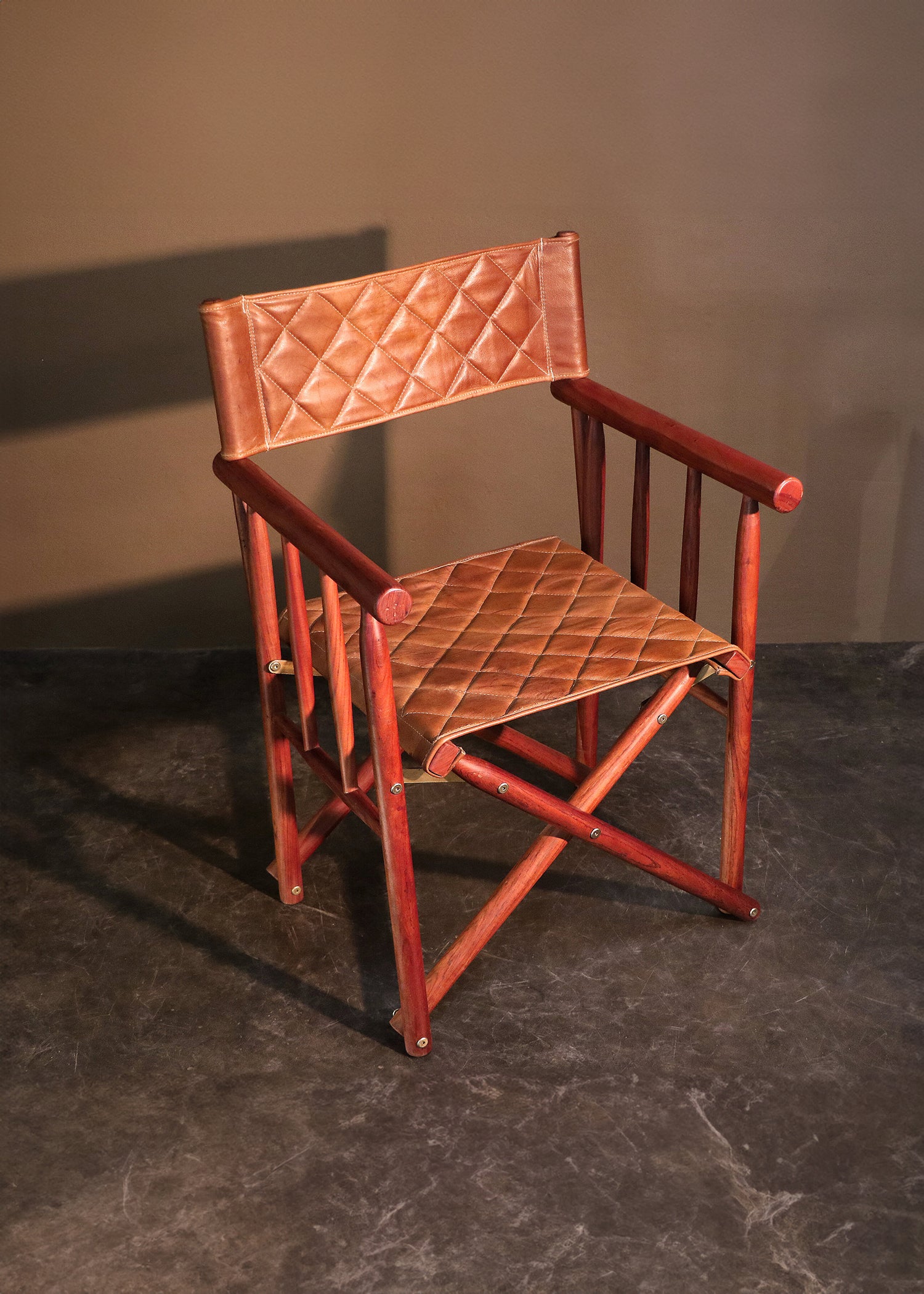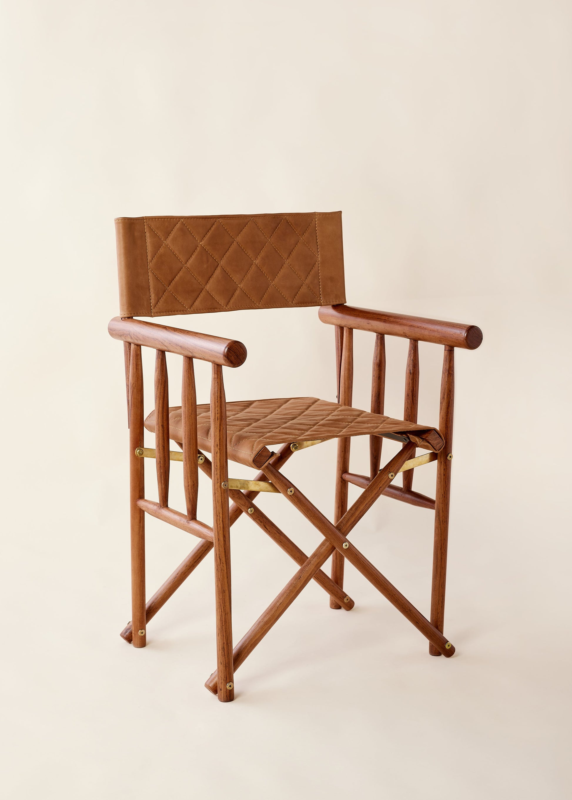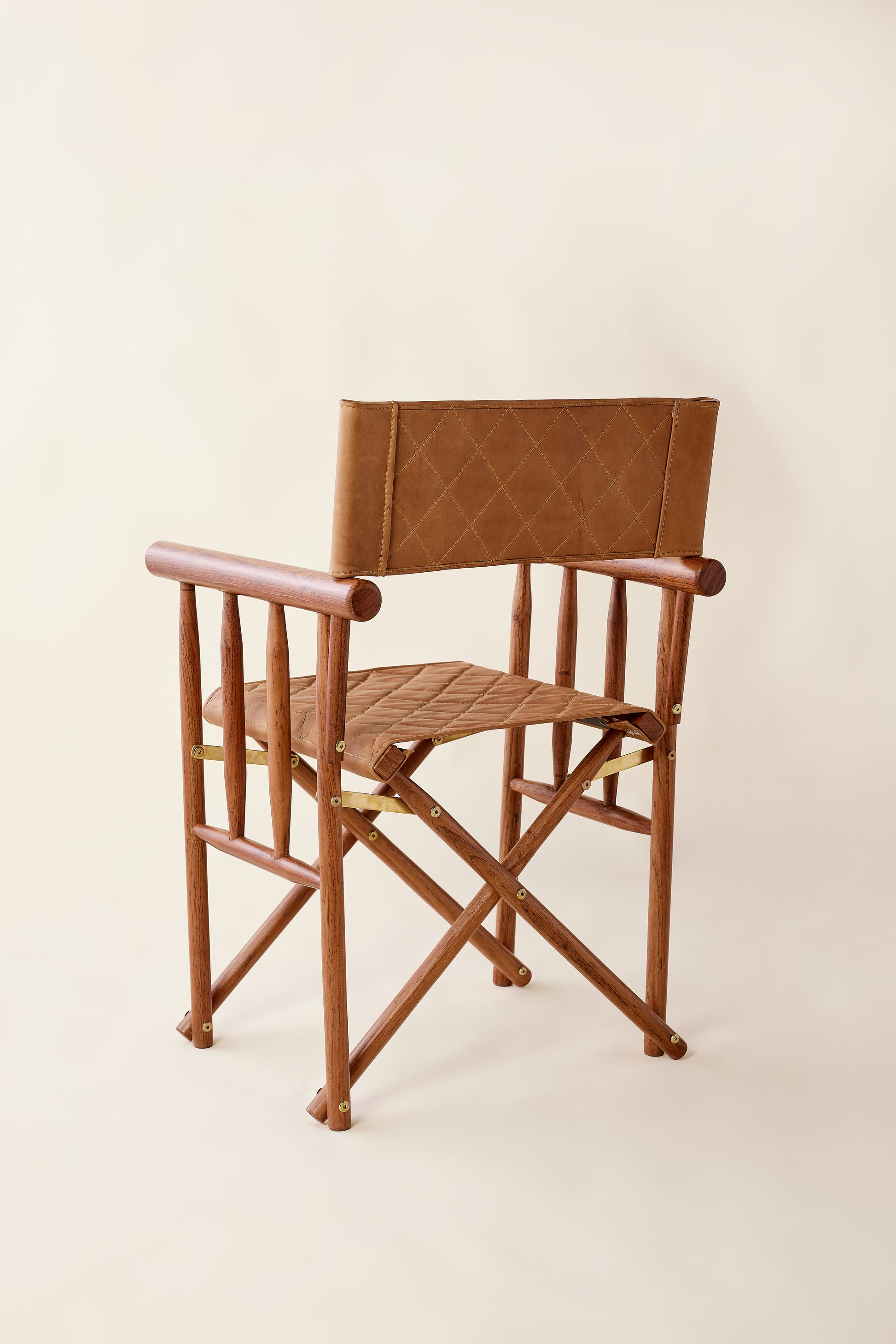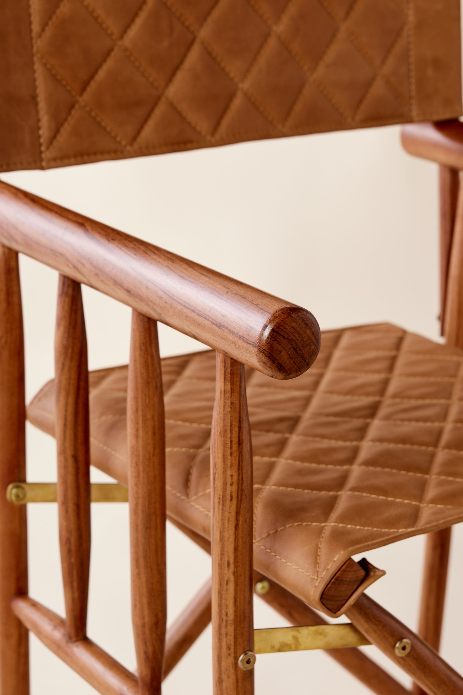 Werten Sie Ihr Interieur mit dem edlen Regiestuhl Kruger aus gestepptem Leder auf, einem Meisterwerk der Handwerkskunst, das den klassischen Regiestuhl neu definiert. Jedes Bauteil dieses Stuhls ist ein Beweis für die Geschicklichkeit und Präzision unserer Meisterhandwerker, vom handgedrechselten afrikanischen Zambezi-Teakholz bis hin zur sanften Bewegung seiner Klappteile, die für Ihren höchsten Komfort mit Lederscheiben gepolstert sind.