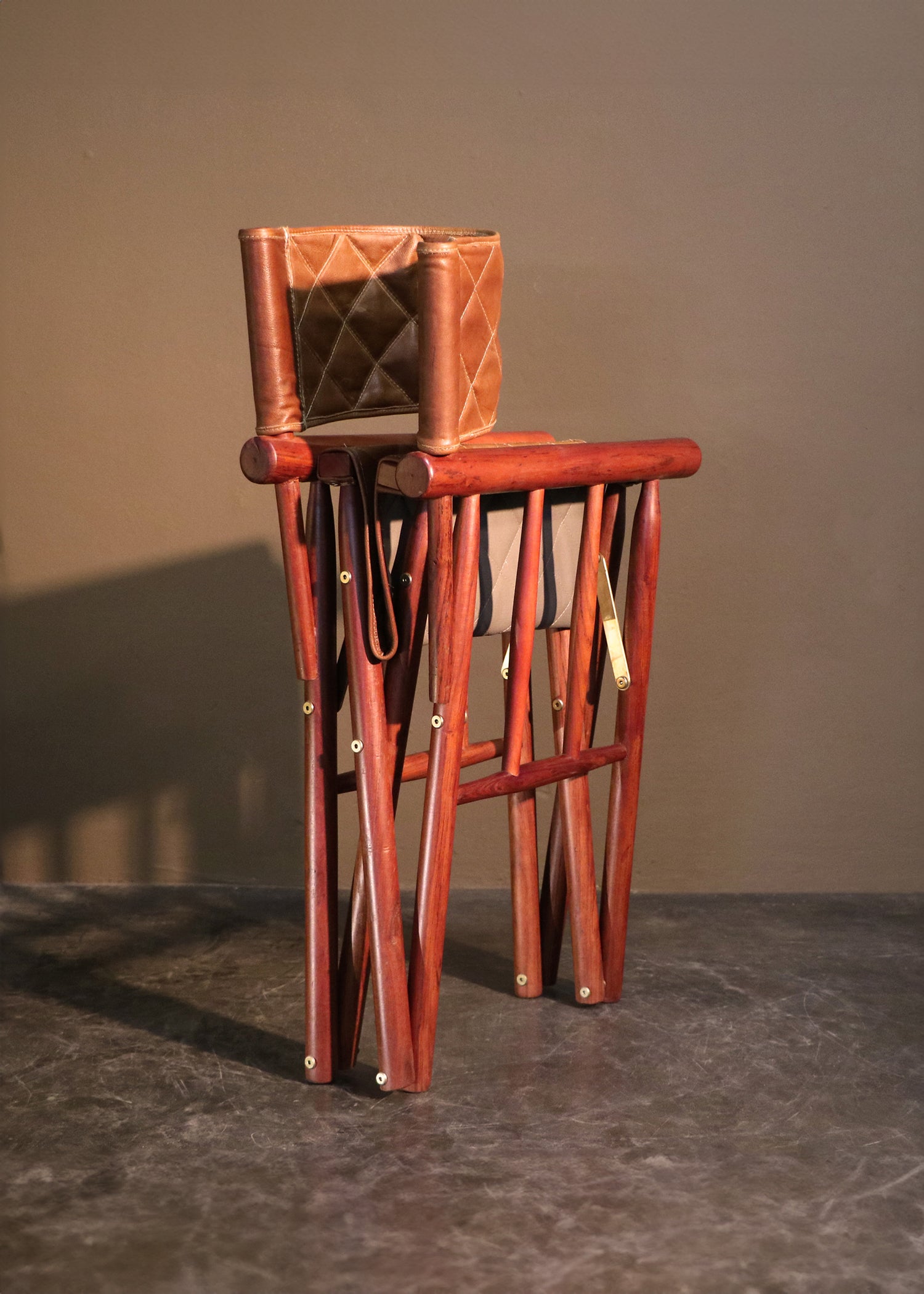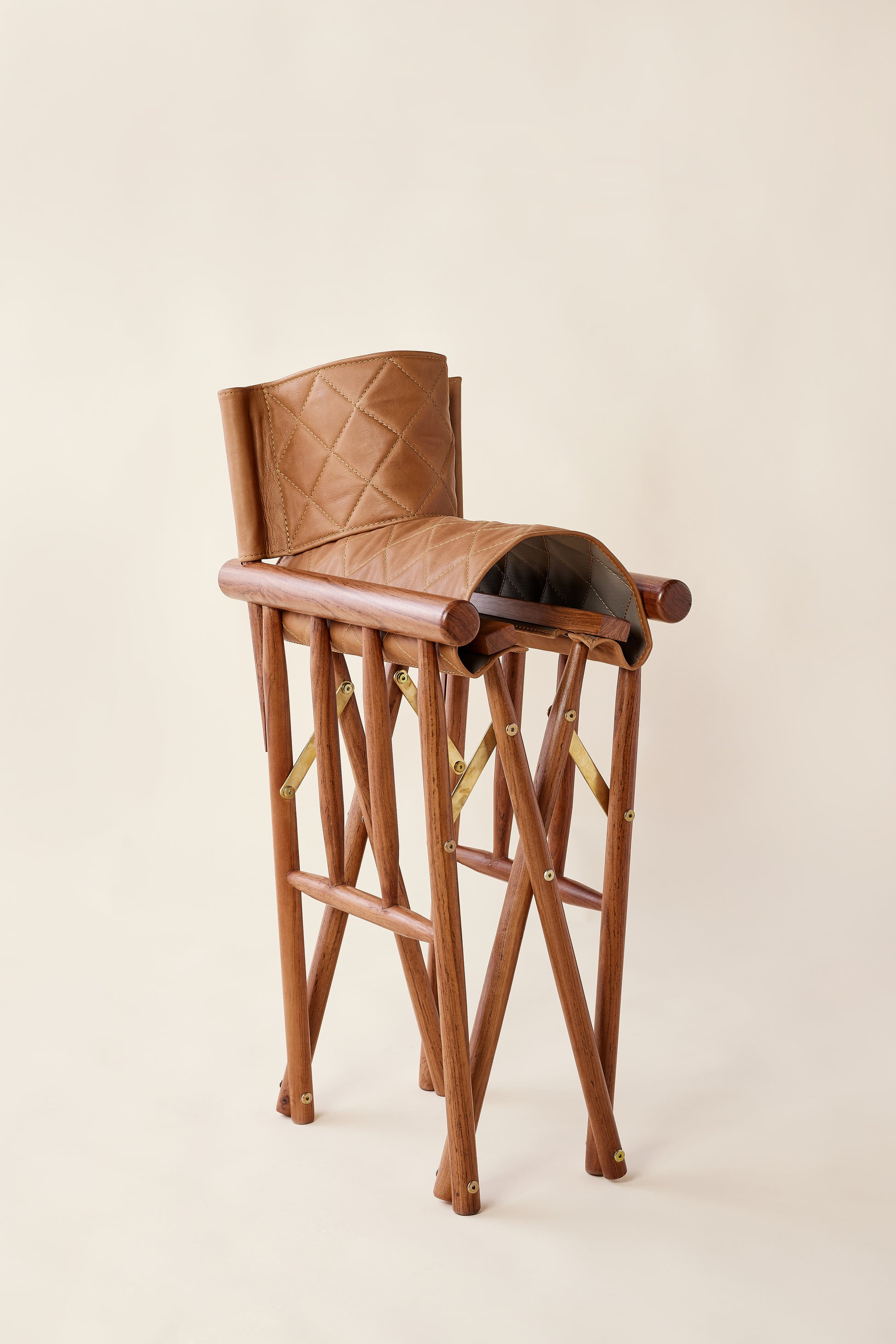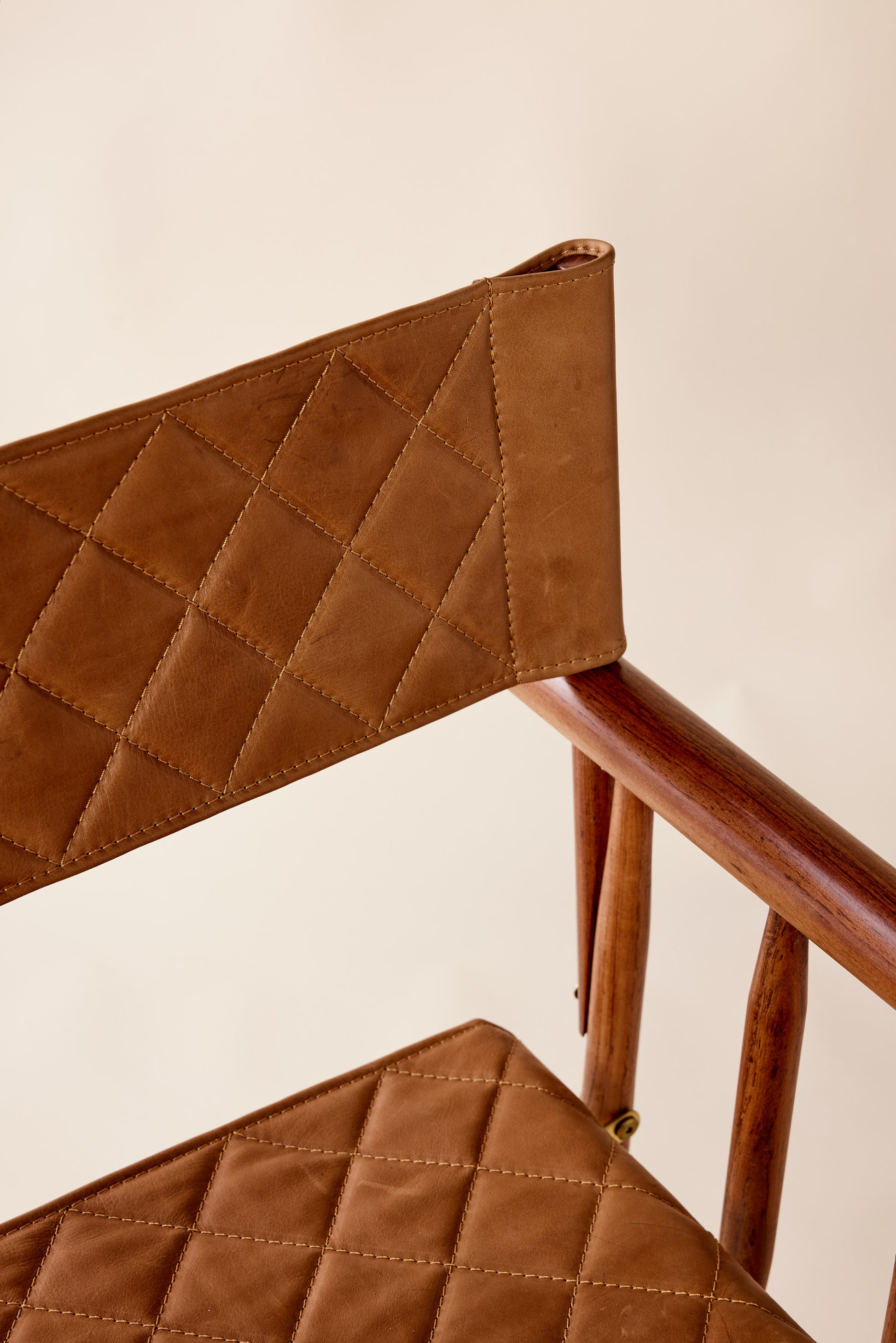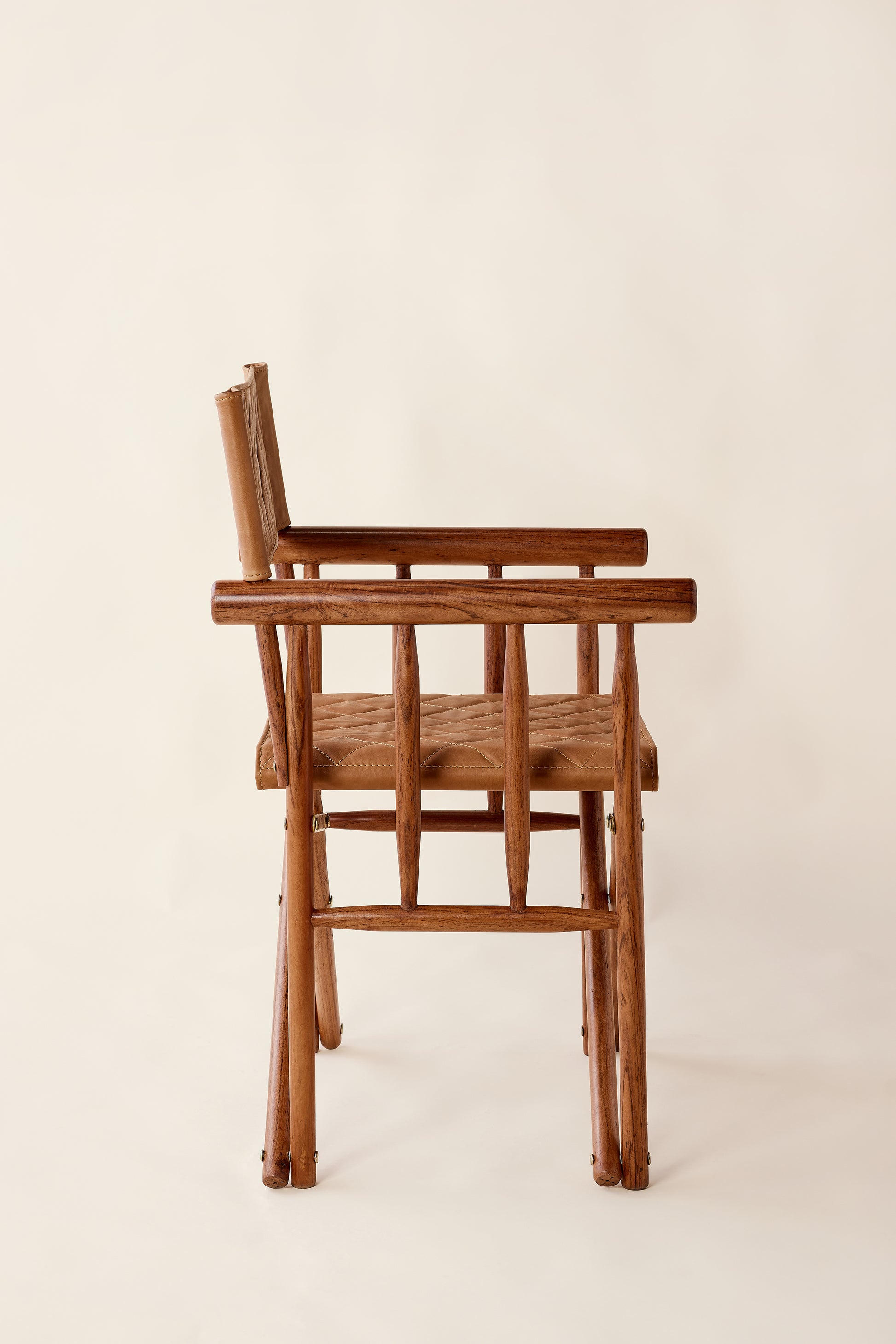 Werten Sie Ihr Interieur mit dem edlen Regiestuhl Kruger aus gestepptem Leder auf, einem Meisterwerk der Handwerkskunst, das den klassischen Regiestuhl neu definiert. Jedes Bauteil dieses Stuhls ist ein Beweis für die Geschicklichkeit und Präzision unserer Meisterhandwerker, vom handgedrechselten afrikanischen Zambezi-Teakholz bis hin zur sanften Bewegung seiner Klappteile, die für Ihren höchsten Komfort mit Lederscheiben gepolstert sind.
