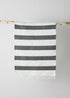 Diese plüschige Matte mit grünen Streifen ist ein luxuriöses, handgewebtes Meisterwerk, gefertigt aus wiederverwertetem weißem Webkantenstoff und grünen Baumwoll-Dhurrie-Bändern, um Ihrem Zuhause Tiefe und Struktur zu verleihen. Die auffälligen Fransenquasten machen sie perfekt, um jedem Raum eine charmante Note zu verleihen, und kann als Dusch-, Bade- oder Küchenmatte verwendet werden – oder überall sonst in Ihrem Zuhause, wo Schönheit und Stil gefragt sind. Scannen Sie den Q-Code auf den Etiketten, um den Weber zu sehen, der Ihr spezielles Stück hergestellt hat.