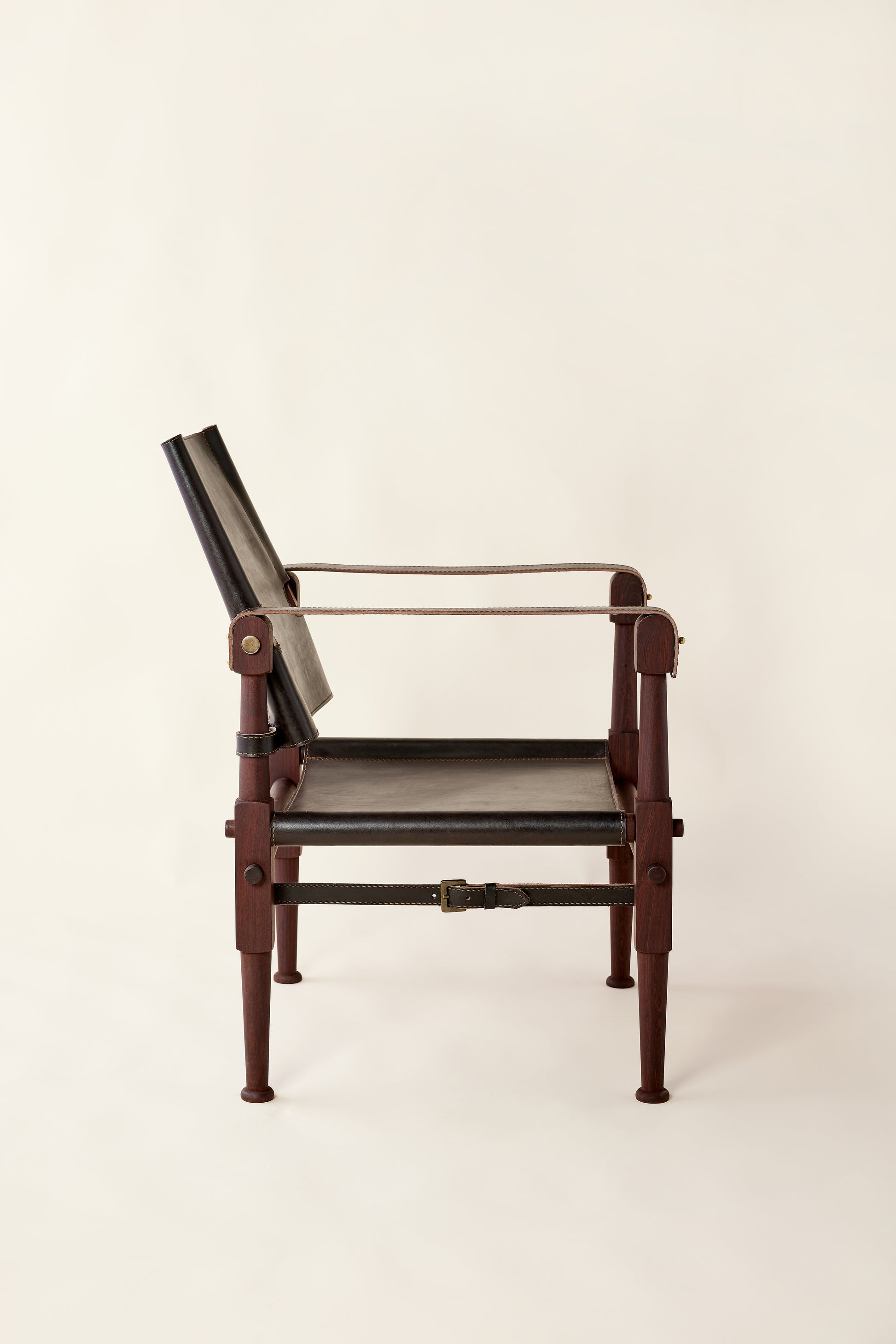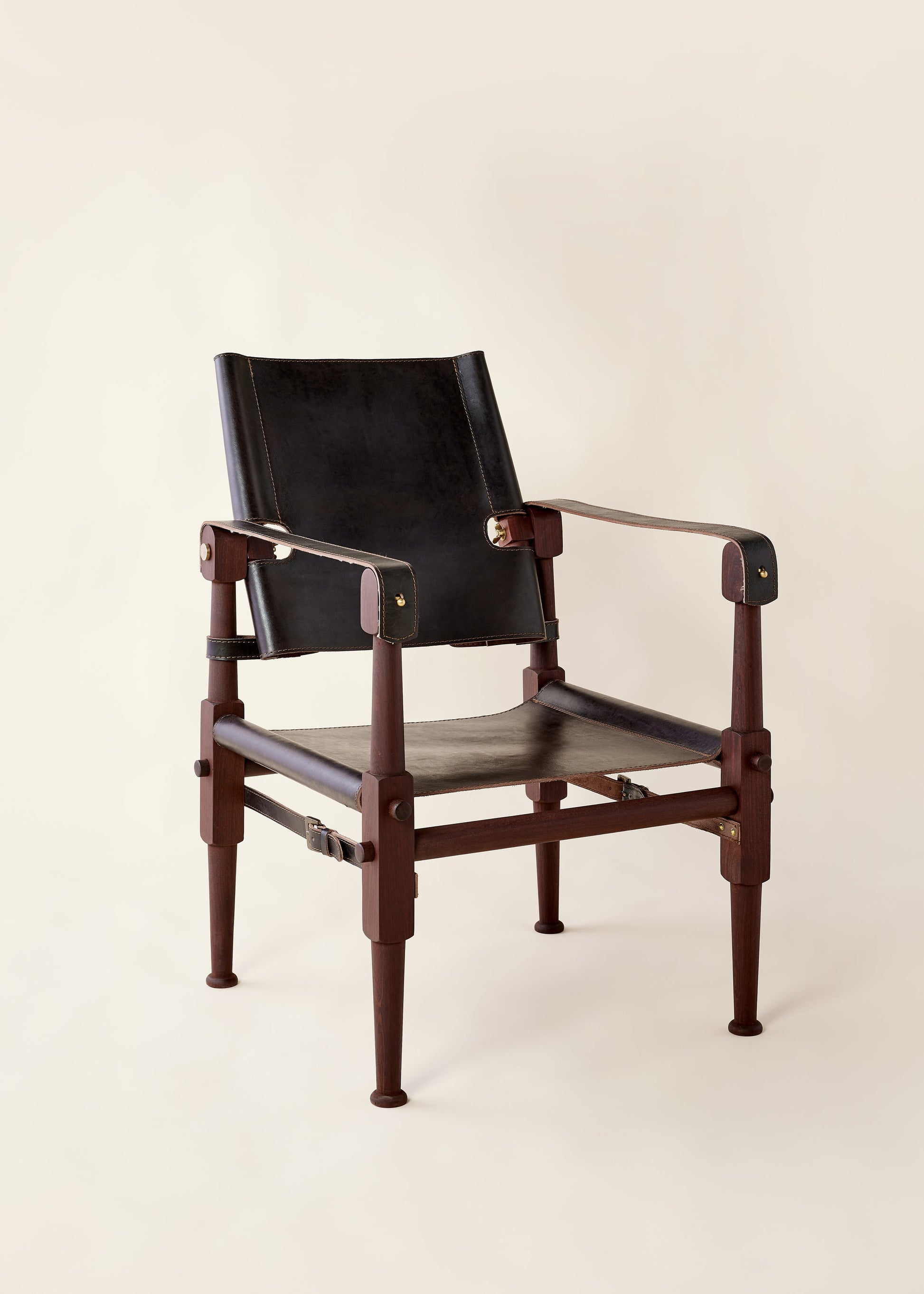 Bringen Sie die zeitlose Eleganz und Funktionalität des Roorkhee-Stuhls in Ihr Zuhause. Inspiriert vom klassischen Feldstuhl der britischen Armee aus dem 19. Jahrhundert ist dieses Stück nicht nur tragbar und leicht, sondern strahlt auch Komfort aus. Das innovative Design des Stuhls ermöglicht eine vollständige Demontage mithilfe einiger Ledergurte und er kann bequem in der mitgelieferten Reisetasche aus Segeltuch verstaut werden.