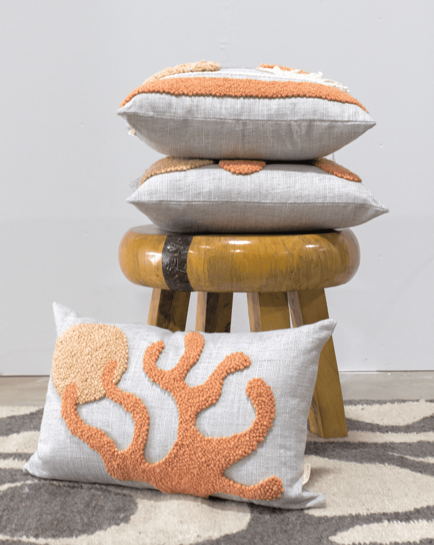 The perfect blend of comfort, style, and simplicity, the Sea Coral Throw Pillow, is crafted from delightfully thick and plush eco-cotton yarns, providing a soft and cozy texture that is sure to impress. The unique 3D 'punch needle' knitting style adds depth and character to the pillows, making them stand out from traditional designs.