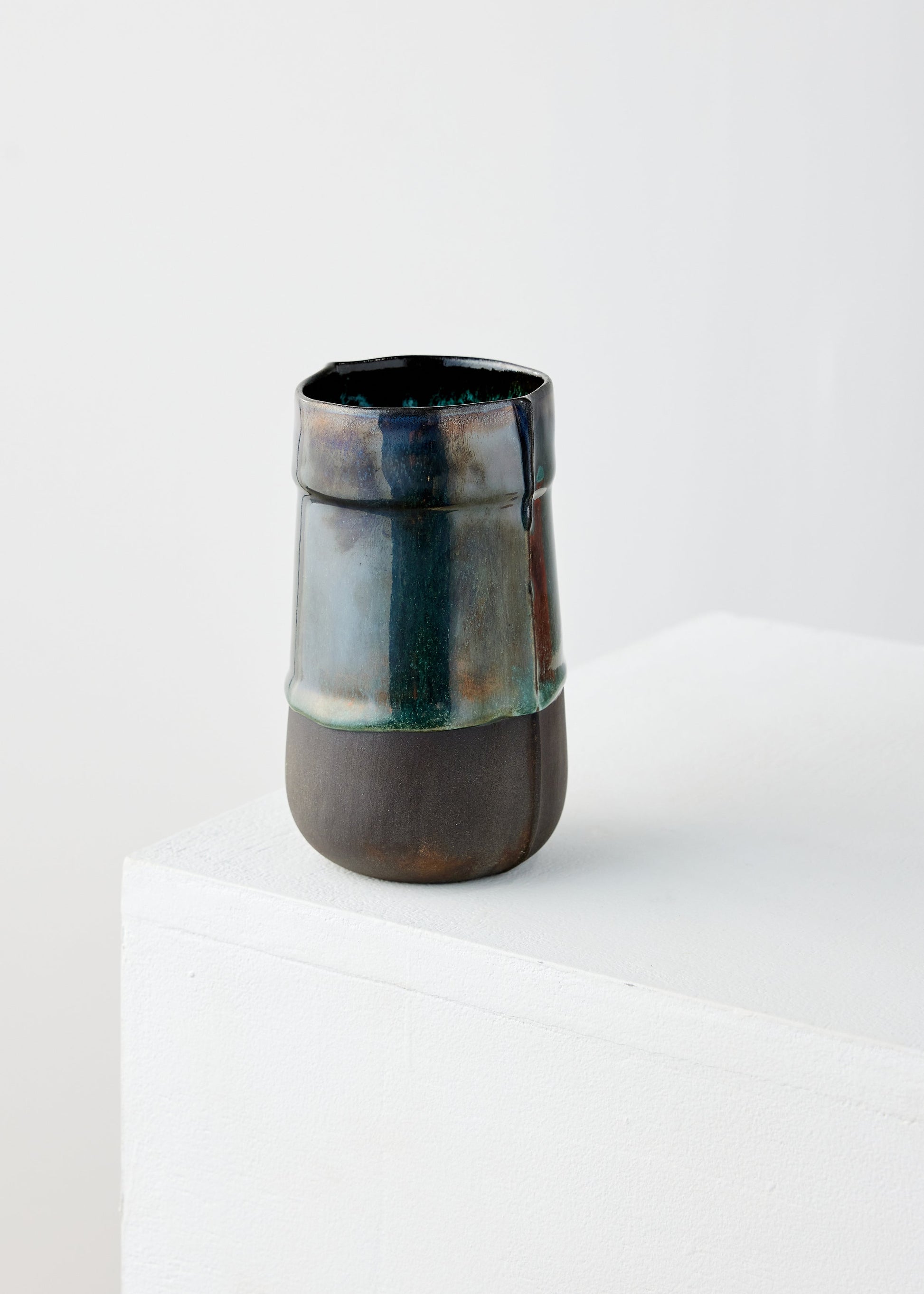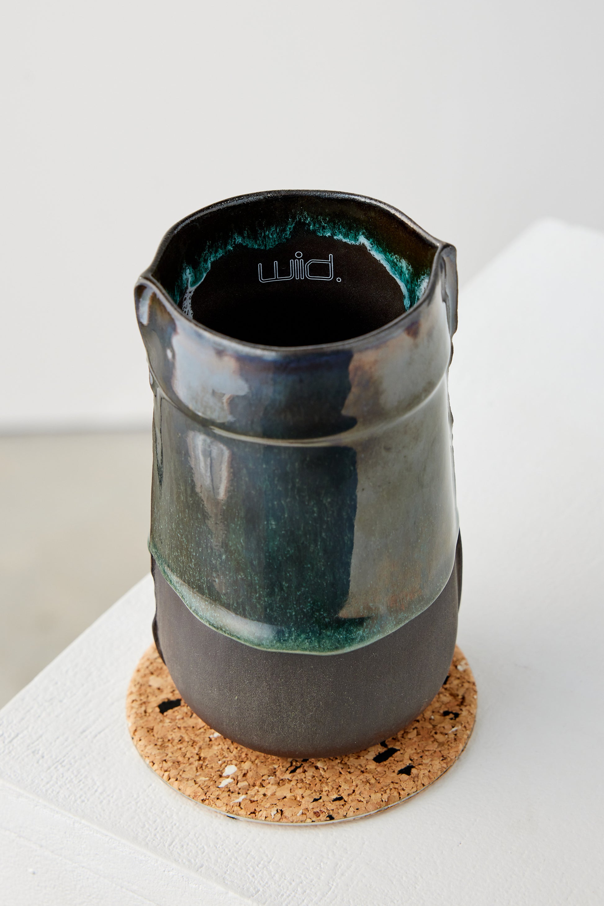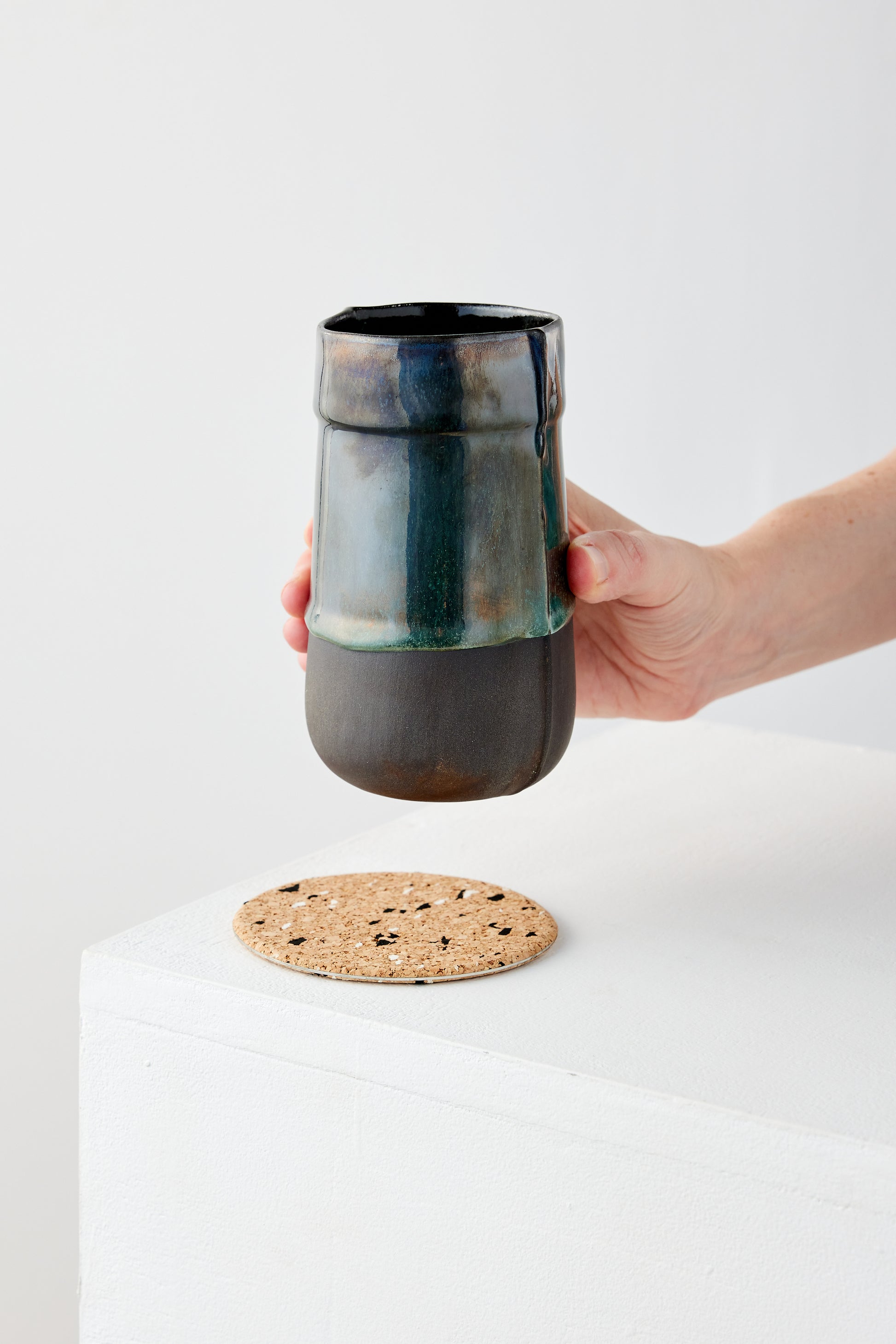 Designed by world-renowned artisan Laurie Wiid vann Heerden, these ceramic mugs blend modern style with traditional handcrafting. The Lava Black Tall Mug is available in reactive rutile with a clear-glazed interior. Hand-dipped and meticulously crafted from black clay, these mugs infuse your dining experience with an earthy charm. Discover the fusion of artisanal craftsmanship and avant-garde design techniques in these exceptional ceramic creations.