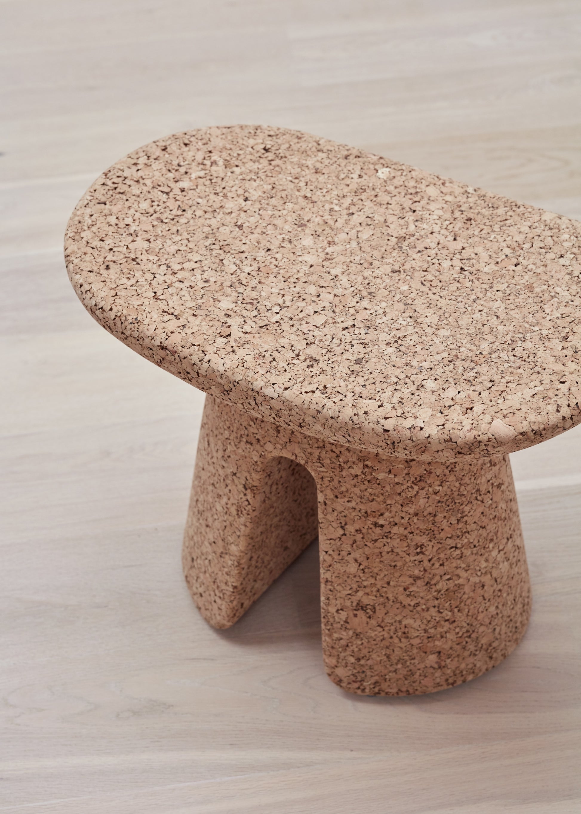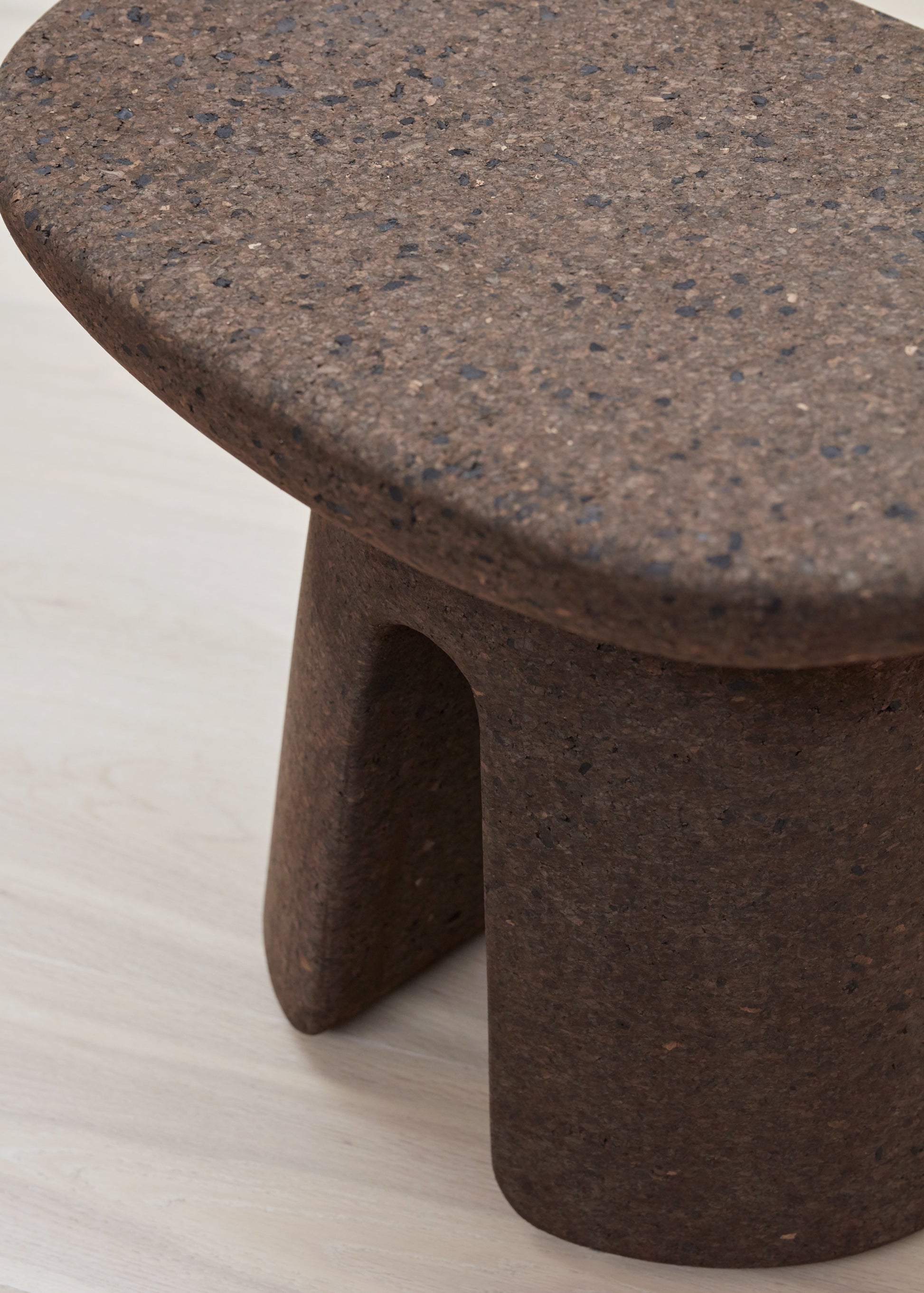 Sculptural in form and rich in symbolism, this hand-carved cork stool is inspired by the African headrest, a timeless object of rest, ritual, and reflection. Crafted from either light façade or dark composite cork, it embodies both heritage and modern sustainability. A bold accent or everyday seat, this piece brings quiet strength and refined presence to any interior.